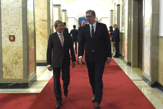 Predsednik Srbije Aleksandar Vučić sastao se danas sa evropskim komesarom za pregovore o proširenju Johanesom Hanom, koji se nalazi u zvaničnoj poseti Srbiji.