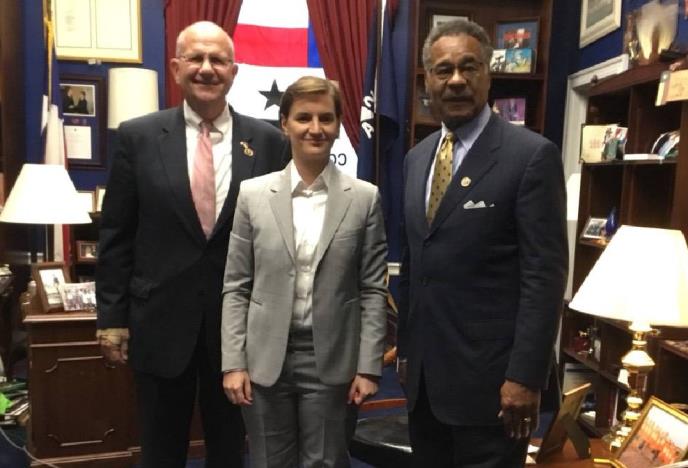 Premijerka Brnabić se sastala sa kongresmenima Tedom Poom i Emanuelom Kliverom, kopredsedavajućima Srpskog kokusa, a posle toga je razgovarala sa senatorkom Džejn Šahin, članicom Spoljnopolitičkog komiteta Senata i Podkomiteta za Evropu.
