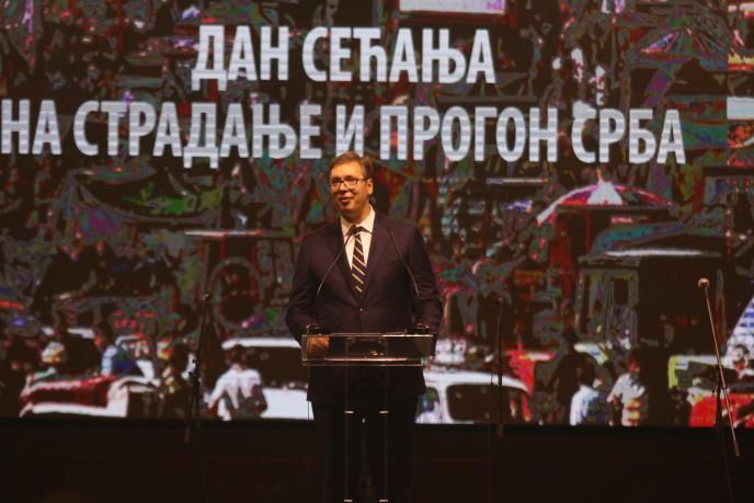 "Nismo smeli da kažemo ni zločin, ni pogrom ni istrebljenje, ni paljenje, danas smemo. Danas je Srbija u ime svojih progovorila bez trunke mržnje i poziva na osvetu, bez želje za bilo čim drugim osim za istinom i elementarnom pravdom. A ja vama želim da ponovim i kažem, a vi ćete znati jesam li dovoljno ozbiljan, da više nikada neće biti Oluja za Srbe zato što su Srbi", rekao je Vučić.