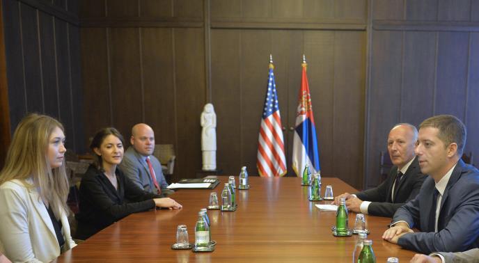 Sastanku sa delegacijom Senata SAD, koju predvodi viši savetnik u Odboru Senata za međunarodne odnose Sara Stoun, prisustvovala je i šefica Odeljenja za politička pitanja ambasade SAD u Beogradu Ejmi Hud, navedeno je u saopštenju.