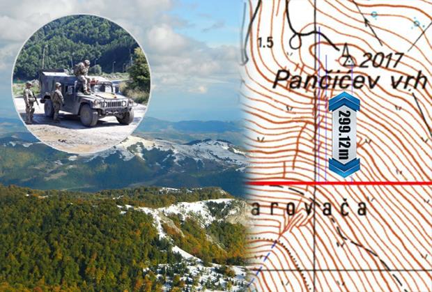 Na mapi se jasno vidi da je administrativna linija podele između Kosova i Centralne Srbije tek nešto manja od 300 metara od Pančićevog vrha, koji predstavlja i najvišu tačku ove planine!
