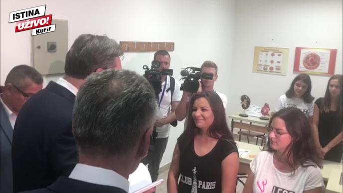 Predsednik joj je zahvalio, a u obraćanju učenicima te škole poručio da neće biti nezaposleni, već da treba samo da uče, rade i budu vredni.