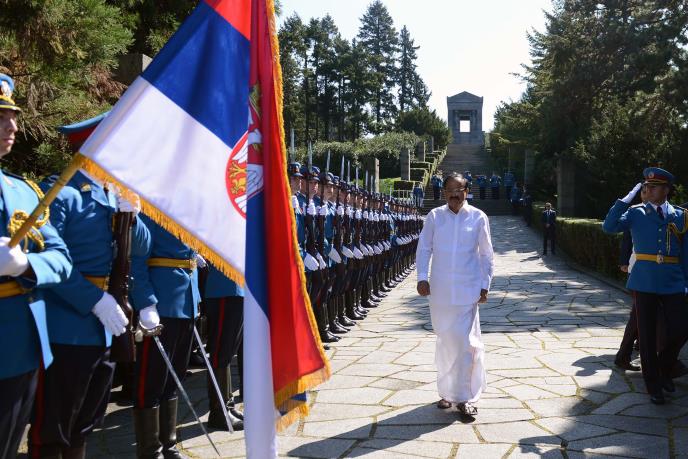 BEOGRAD - Uz najviše vojne počasti, intoniranje himni Indije i Srbije i počasnog stroja Garde Vojske Srbije, potpredsednik Indije Venkaja Naidu položio je danas venac na Spomenik neznanom junaku na Avali, u pratnji ministra odbrane Aleksandra Vulina.