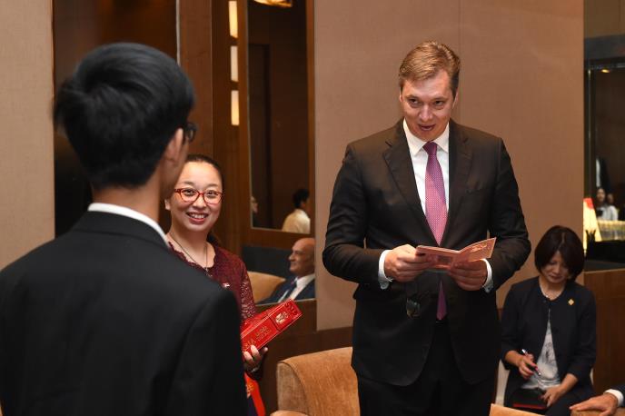 Inače, kineski studenti predsedniku Srbije uručili su čestitku napisanu na srpskom jeziku, ćirilicom.