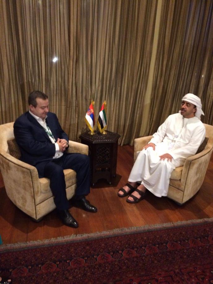 Ministar Dačić, koji boravi u poseti Ujedinjenim arapskim emiratima, istakao je zadovoljstvo nivoom ostvarenih kontakata na visokom i najvišem nivou, kao i usponom koji beležimo u međusobnoj ekonomskoj saradnji. Potvrdio je spremnost Srbije za dalje jačanje i proširenje svestrane saradnje na svim poljima.