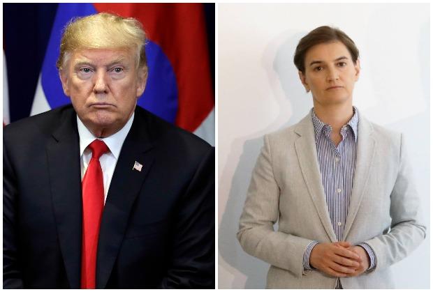 NJUJORK, BEOGRAD - Premijerka Ana Brnabić zahvalila je predsedniku SAD Donaldu Trampu na promeni odnosa aktuelne administracije u Vašingtonu prema Srbiji i razumevanju za stavove naše zemlje po pitanju KiM, a prvi čovek SAD je na to, prema pisanju beogradskih medija, uzvratio rečima - Srbi su dobar narod.