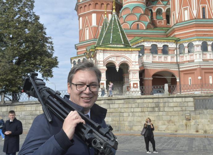 TASS je preneo da je Vučić s glumcem Milošem Bikovićem prošetao holom sale odakle se vidi centar Moskve. Vučić je rekao da se Moskva, "jedan od najlepših gradova na svetu, u poslednje vreme promenila na bolje".