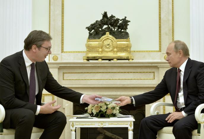 "Hvala Vam još jednom za sve što činite za Srbiju i ponovo Vas pozivam da posetite Beograd", zaključio je Vučić i poklonio knjigu Putinu.