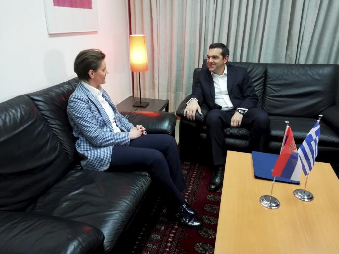 Premijerka Ana Brnabić sastala se danas u Solunu sa grčkim premijerom Aleksisom Ciprasom uoči njihovog zajedničkog učešća na panelu u okviru 3. Solunskog samita.