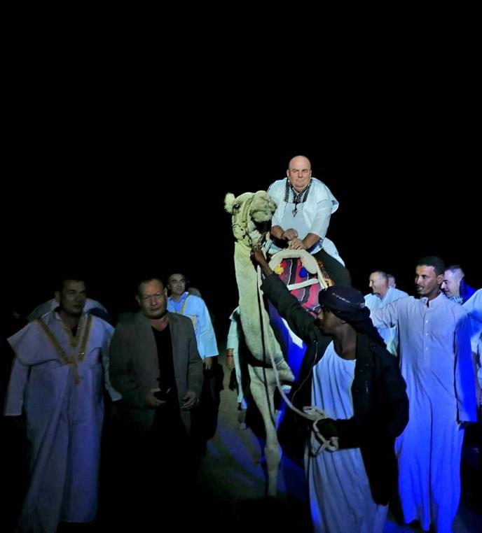Uveče je za delegaciju Jagodine priređena večera u pustinji, u veoma lepom ambijentu, gde su se domaćini potrudili da pokažu koliko im je važna poseta delegacije na čelu sa Draganom Markovićem Palmom. Ambijent je bio ukrašen zastavama Srbije i Egipta. Na predlog domaćina, Palma je tom prilikom uzjahao kamilu, uz zvuke srpske himne. Palma i čitava srpska delegacija bili su obučeni u tradicionalnu egipatsku nošnju.