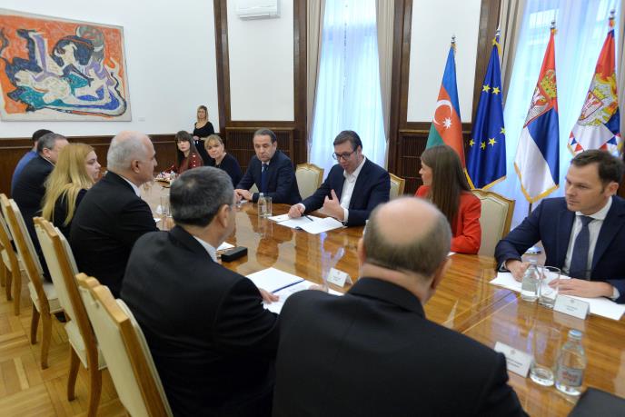 Vučić i Šahin, koji je kopredsedavajući Medjuvladine komisije za trgovinu i ekonomsku saradnju Srbije i Azerbejdžana, složili su se u oceni da obim ekonomske saradnje i trgovinske razmene ne odgovara mogućnostima i ne prati političke odnose, koji su dostigli nivo strateškog partnerstva, saopšteno je iz pres službe predsednika Srbije.