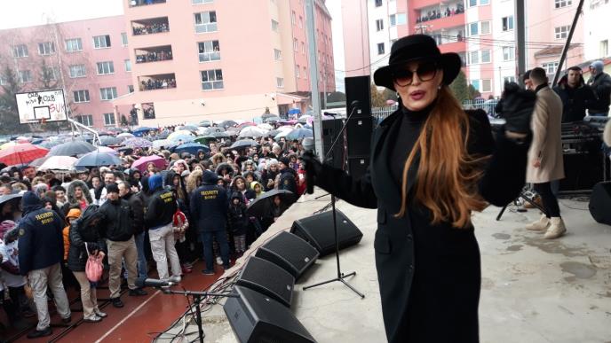 KOSOVSKA MITROVICA - Folk zvezda Svetlana Ceca Ražnatović nastupila je danas pred građanima u Kosovskoj Mitrovici, a hiljade ljudi ni kiša nije sprečila da izađu na trg i i pevaju sa njom uglas.