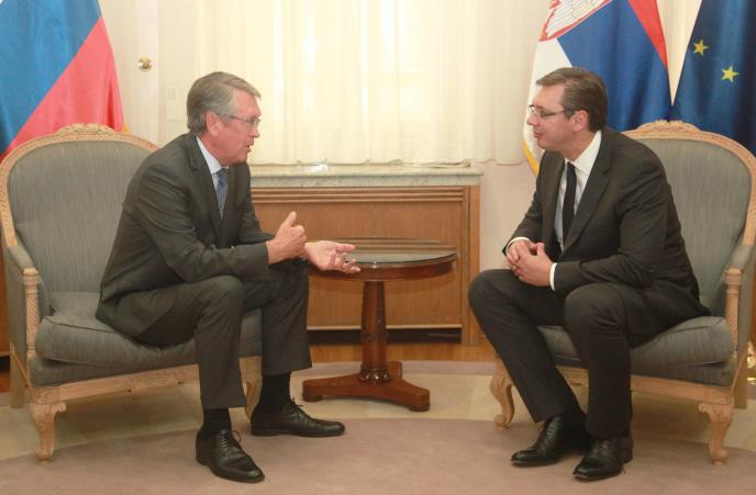 Predsednik Srbije Aleksandar Vučić primio je večeras ambasadora Rusije Aleksandra Čepurina, koji mu nosi "poruku Moskve", nakon današnje odluke Prištine o transformaciji KBS u vojsku Kosova.
