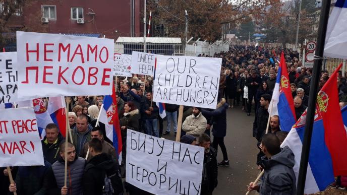 Srbi sa Kosova i Metohije zatražili su danas od Brisela da bez odlaganja uvede političke i ekonomske sankcije prema vlastima u Prištini, do okončanja kršenja CEFTA sporazuma. Oni su taj, i još nekoliko zahteva izneli na današnjem protestu u Kosovskoj Mitrovici. Takođe traže čvrste garancije međunarodne zajednice da specijalne policijske jedinice i Kosovske bezbednosne snage neće dolaziti na sever, jer je to, ističu, jedini način da se izbegne eskalacija sukoba.