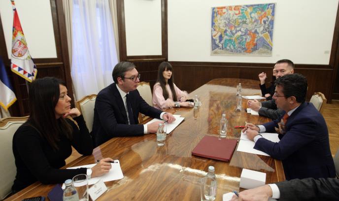 Predsednik Srbije Aleksandar Vučić sastao se danas sa šefom Misije OEBS-a u Srbiji Andreom Oricijem, kojem je zahvalio na doprinosu te misije reformskim procesima u Srbiji, spremnosti da pomognu u izradi nove medijske strategije i pruže podršku poboljšanju medijske situacije u našoj zemlji kroz najbolje primere evropskih iskustava.