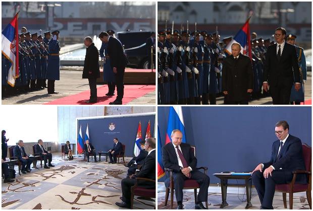 Predsednik Rusije Vladimir Putin zahvlio se Aleksandru Vučiću na lepim rečima tokom sastanka u Palati Srbije. „Zahvalio bih se svim Srbima na toplom prijemu“, rekao je Putin. Posebno se osvrnuo na povećanje robne razmene dve zemlje.