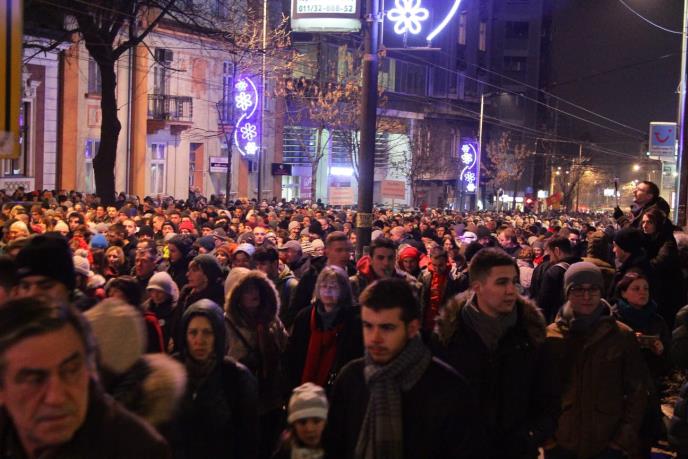 Sedmi protest Đilasove koalicije SZS u Beogradu pod nazivom "Jedan od pet miliona" održan je večeras. Građani su se okupili ispred Platoa kod Filozofskog fakulteta, gde su im se obratili glumci Branislav Trifunović i Nikola Kojo, a šetnja je krenula ka zgradi RTS.