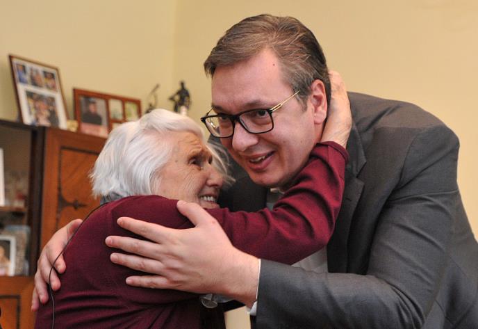 Predsednik Aleksandar Vučić posetio je danas najstariju Srpkinju, 107-godišnju Nadeždu Pavlović, u njenom domu na Vračaru, nakon što je do njega došao glas da želi da ga upozna. Gospođa Nadežda, učiteljica u penziji, živi sama.