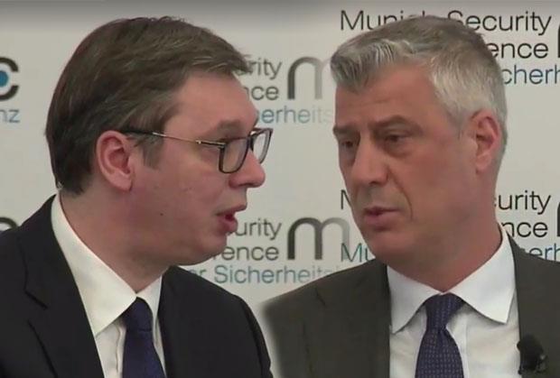 Predsednik Srbije Aleksandar Vučić pribegao je danas jednostavnom "argumentu" u duelu sa Hašimom Tačijem, u Minhenu, koji je rekao da Srbija krši sporazume blokiranjem članstva Kosova u međunarodnim organizacijama.