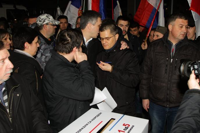 Večeras se među okupljenima dele primerci Sporazuma sa narodom, koji je ranije usvojila opozicija, pa zainteresovani građani mogu da uzmu i potpišu primerak.