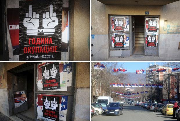 Plakati su izlepljeni u centralnim ulicama severne Kosovske Mitrovice kao odgovor na obeležavanje 11. godišnjice jednostrano proglašene kosovske nezavisnosti.