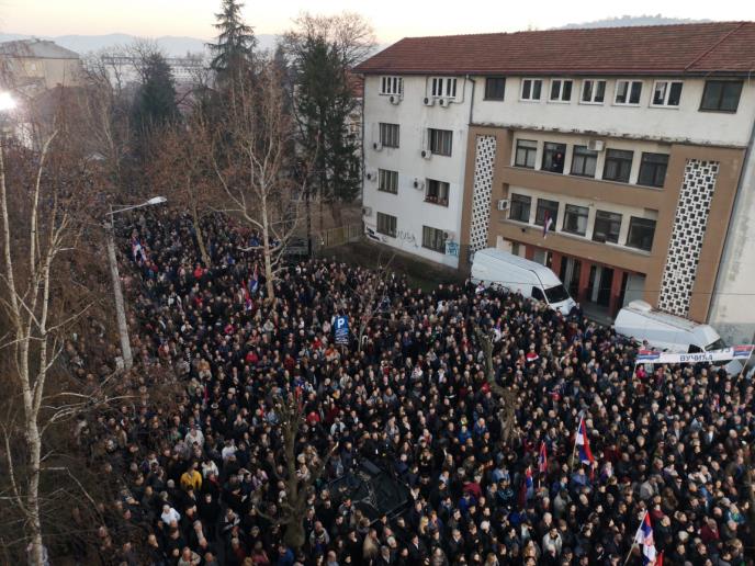 "Čini mi se da je potpuno jasno i kada pogledate i večeras Leskovac, danas i Bojnik, Lebane, Medveđu, Vlasotince, svaki drugi dan, da je ustala Srbija, pristojan Srbija, da sačuva takvu Srbiju i od onih spolja i od onih unutra koji bi da je sruše", rekao je on.
