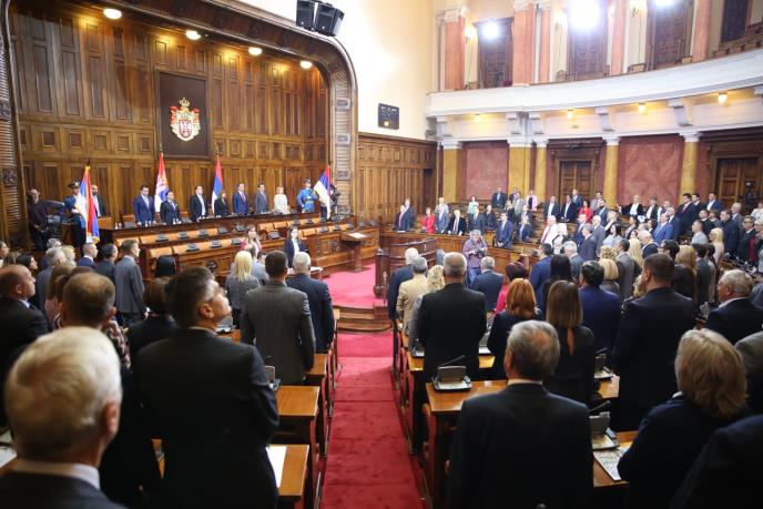 Prva sednica redovnog zasedanja Skupštine Srbije u 2019. godini počela je danas intoniranjem himne, a ispred Doma Narodne skupštine poslanike je dočekala Garda Vojske Srbije.