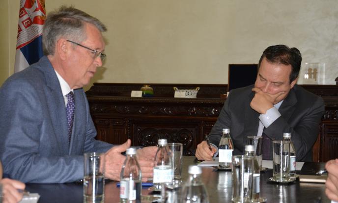 Prvi potpredsednik Vlade i ministar spoljnih poslova Ivica Dačić i ambasador Ruske Federacije u Beogradu Aleksandar Čepurin razgovarali su danas o poseti našeg ministra Ruskoj Federaciji u okviru obeležavanja 140 godina od otvaranja prvog poslanstva Srbije u Sankt Peterburgu.