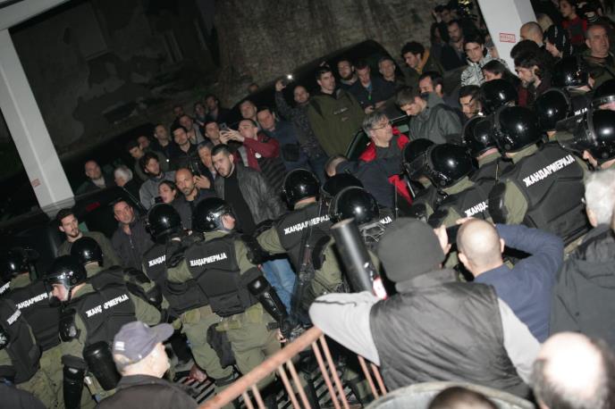 Posle dvosatne blokade, kako je naveo UNS, intervenisala je policija koja je izgurala protestante iz zgrade RTS-a nešto pre 23 sata.
