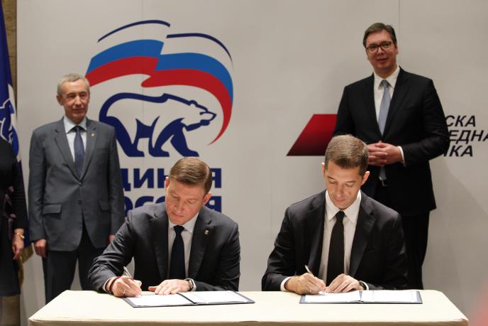 Potpredsednik Glavnog odbora Srpske napredne stranke Marko Đurić i sekretar Generalnog saveta stranke Jedinstvena Rusija Andrej Turčak potpisali su danas u Beogradu zajedničku izjavu, kojom se izražava spremnost za produbljivanje rusko-srpskog strateškog partnerstva u interesu naroda dveju bratskih zemalja, čije iskreno prijateljstvo, kako je konstatovano, ima dugu istoriju i prošlo je iskušenje vremena.