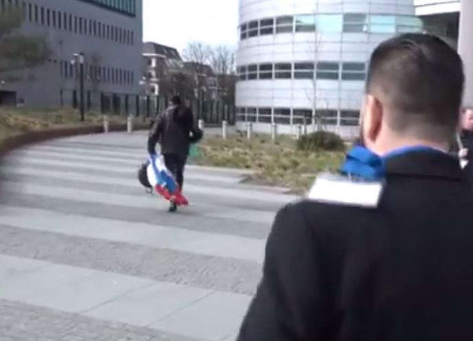 NOVI INCIDENT ISPRED SUDA U HAGU: Izvređali muškarca sa srpskom zastavom (VIDEO)