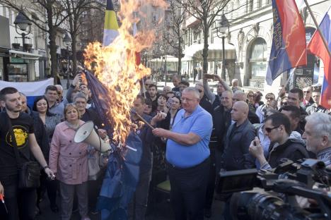 ŠETNJA POVODOM 20. GODINA OD BOMBARDOVANJA: Vojislav Šešelj zapalio zastave EU i NATO (FOTO)