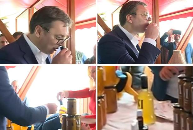 NAPADALI JEDNOM DAČIĆA U SKUPŠTINI KAKO PIJE, A JA GA ŠUTIRAM DOLE NOGOM: Vučić probao domaću medovaču iz poklopca, pa otkrio još ponešto! (VIDEO)