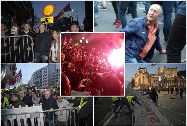 Opozicija okupljena oko lidera desničarske političke organizacije Boška Obradovića srušila je ogradu u Kolarčevoj ulici, nakon što su promenili rutu večerašnjeg protesta. Na Trgu republike demolirane sve ograde, poneli ih do Skupštine grada!
