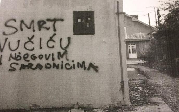 Na zidu jednog objekta napisano je "Smrt Vučiću i njegovim saradnicima".