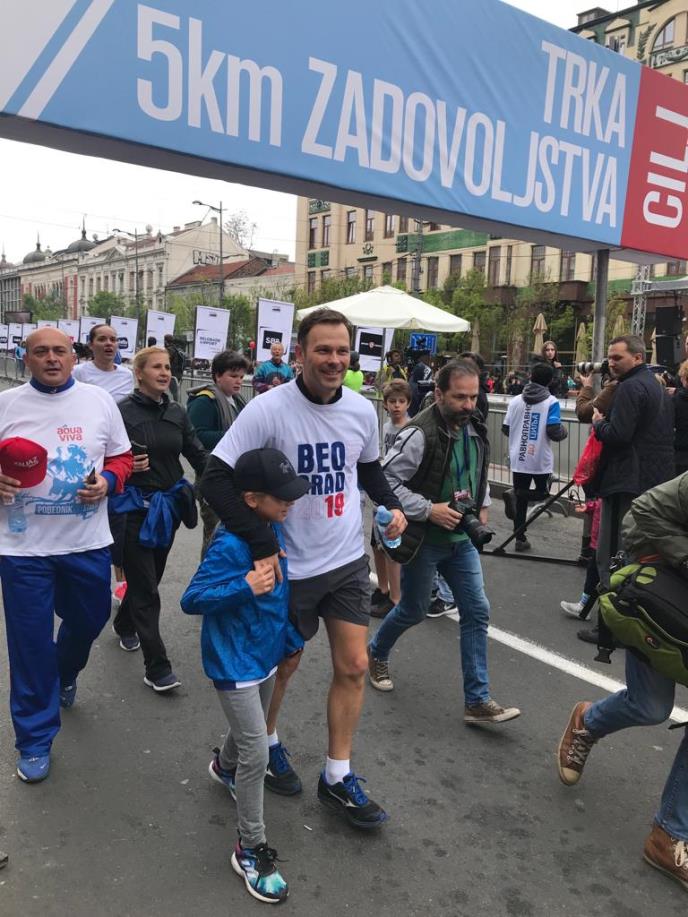 On je sa svojom decom istrčao 5.000 metara u Trci zadovoljstva na ovoj sportskoj manifestaciji u glavnom gradu.
