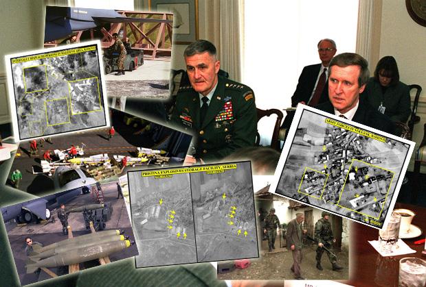 Objavljene fotografije obuhvataju ne samo slike NATO aviona akciji već i do sada neviđene slike ciljeva u Srbiji i Crnoj Gori pre i posle dejstava, od vojnih objekata kao što su kasarne, skladišta municije, preko fabrika oružja, državnih institucija, rafinerija, mostova, železničkih pruga, pa sve do čisto civilnih objekata, poput nekadašnje Fabrike automobila Zastava.