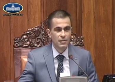 Čim je preuzeo predsedavanje od Maje Gojković, dao je reč članu SRS Nemanji Šaroviću koji se našalio i dobacio mu "Prvo, pa muško" aludirajući da je Milićević po povratku na posao baš njemu prvom dao reč.