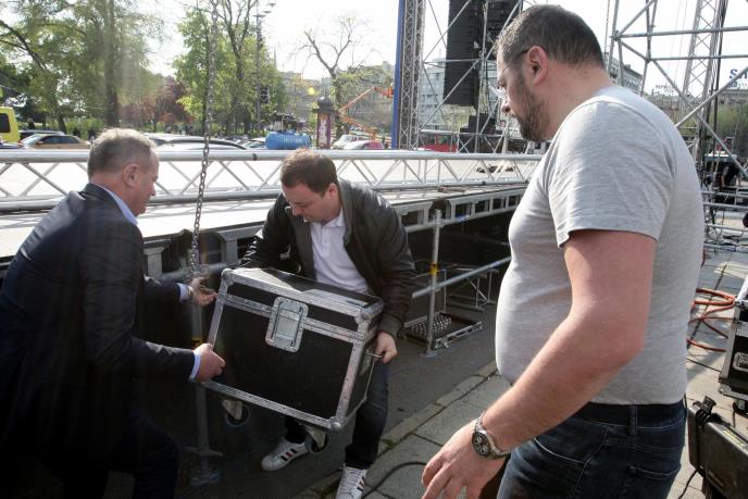 Ispred parlamenta montirana je velika bina, a postavljena su i tri velika LED ekrana. U toku je postavljanje medijskih ekipa koje će pratiti skup, kao i tonske probe.