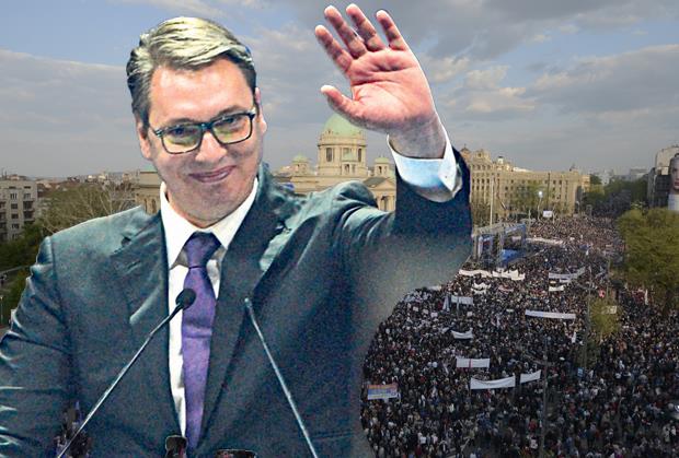 Vučić je nastupio kao poslednji govornik, a njegov govor je u nekoliko navrata prekidala masa povicima „Aco, Srbine“ i dugotrajnim aplauzima. Pošto se popeo na binu, Vučić je pozvao mladiće koji su peške stigli sa Kosova za Beograd da stanu iza njega.
