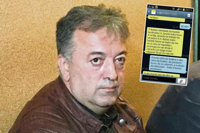 - Ti (i) Bubac (Dragoljub Marković, predsednik TO Brus) ne treba da budete koordinatori a Janačko (Aranđel Stojković, tada Jeličićev zamenik u Opštini) kako hoće. A za BG Janačko bi trebalo da se pojavi, a ti i Bubac kako hoćete. Samo se bojim da me ovi iz SNS ne napadaju i prozivaju za vas dvoje. A Janačko za njega imam odgovor - on je URS, nije NS - napisao je Jeličić svom saradniku u SMS poruci, kao i: