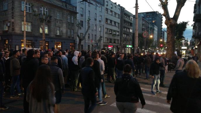 Grupa desničara zadržala se svega desetak minuta noseći transparente i pevajući pesme o Kosovu i Metohiji, jer su na taj način želeli da iskažu revolt zbog održavanja festivala. Pred njih je stao kordon policije nakon čega su se razišli.
