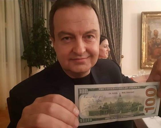 Ambasada je reagovala na postupak Dačića koji se pripključio "internet izazovu" i na novčanici od 100 američkih dolara ćirilicom napisao "Kosovo je Srbija" i potpisao se, prenosi Radio Slobodna Evropa.