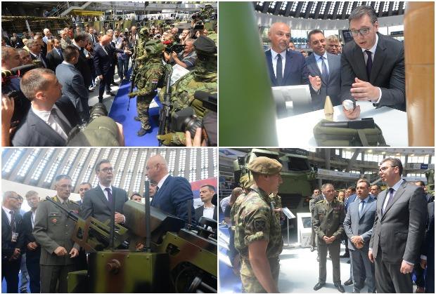 Zatim je u pratnji načelnika Generalštaba Milana Mojsilovića i ministra Aleksandra Vulina upoznat sa opremom koju proizvodi Jugoimport.