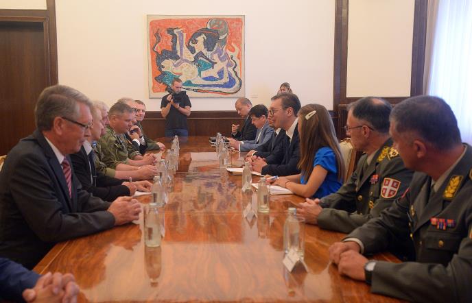 Predsednik Srbije Aleksandar Vučić primio je danas delegaciju ministarstava odbrane Rusije i Belorusije, koja učestvuje na vežbi "Slovensko bratstvo 2019".