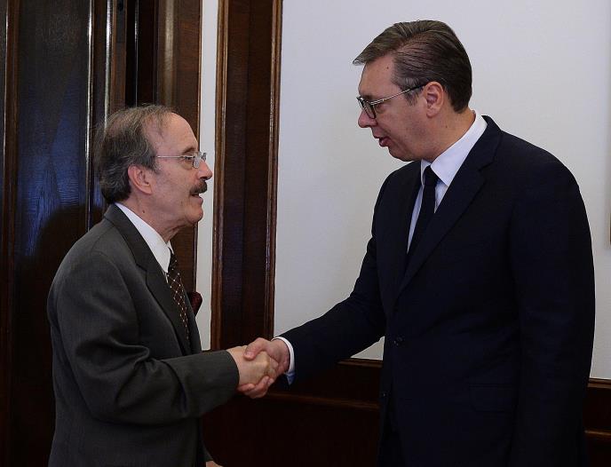 BEOGRAD - Predsednik Srbije Aleksandar Vučić jutros je na Andrićevom vencu primio jednog od najaktivnijih i najtvrđih albanskih lobista u Vašingtonu, kongresmena Eliota Engela.