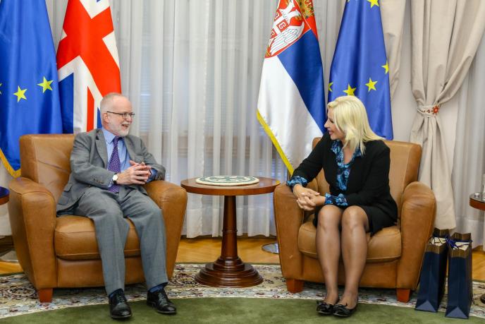 Potpredsednica Vlade i ministarka građevinarstva, saobraćaja i infrastrukture Zorana Mihajlović, primila je danas u oproštajnu posetu ambasadora Velike Britanije u Srbiji, Denisa Kifa, i tom prilikom mu zahvalila na podršci i pomoći u sprovođenju reformi i realizaciji važnih projekata za našu zemlju.