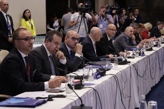Dačić je ponovio i da ne razume razloge za nedolazak prištinske delegacije na skup jer su uslovi njihovog učešća definisani Sporazumom iz 2012, uz zvezdicu i funsnotu, budući da statusno pitanje Kosova i Metohije još nije rešeno.