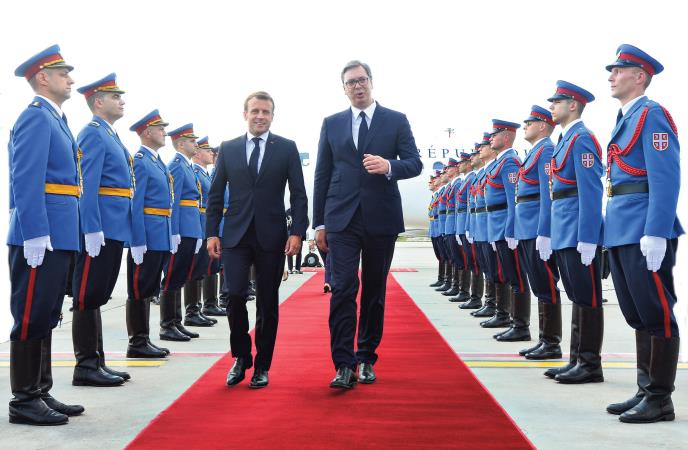 Delegacija Francuske, predvođena predsednikom te zemlje Emanulom Makronom, stigla je juče u dvodnevnu posetu Srbiji. Posle dočeka na aerodromu „Nikola Tesla“ i svečanog dočeka ispred Palate Srbije, dvojica predsednika imali su sastanak u četiri oka. Sastanak je, umesto predviđenih 30 minuta, trajao čak sat i po, a kako su saopštili predsednici na konferenciji posle sastanka, pričali su o svim temama, uključujući i problem Kosova i integracije Srbije u EU.
