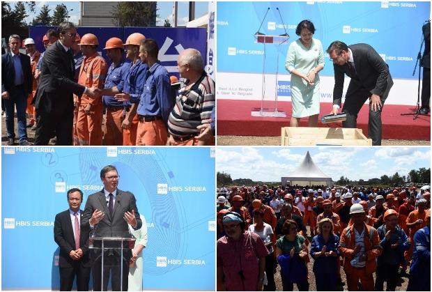 Predsednik Srbije Aleksandar Vučić prisustvovao je ceremoniji polaganja kamena temeljca za izgradnju novog postrojenja Aglomeracije kompanije "Hbis group Serbia" u Železari Smederevo.